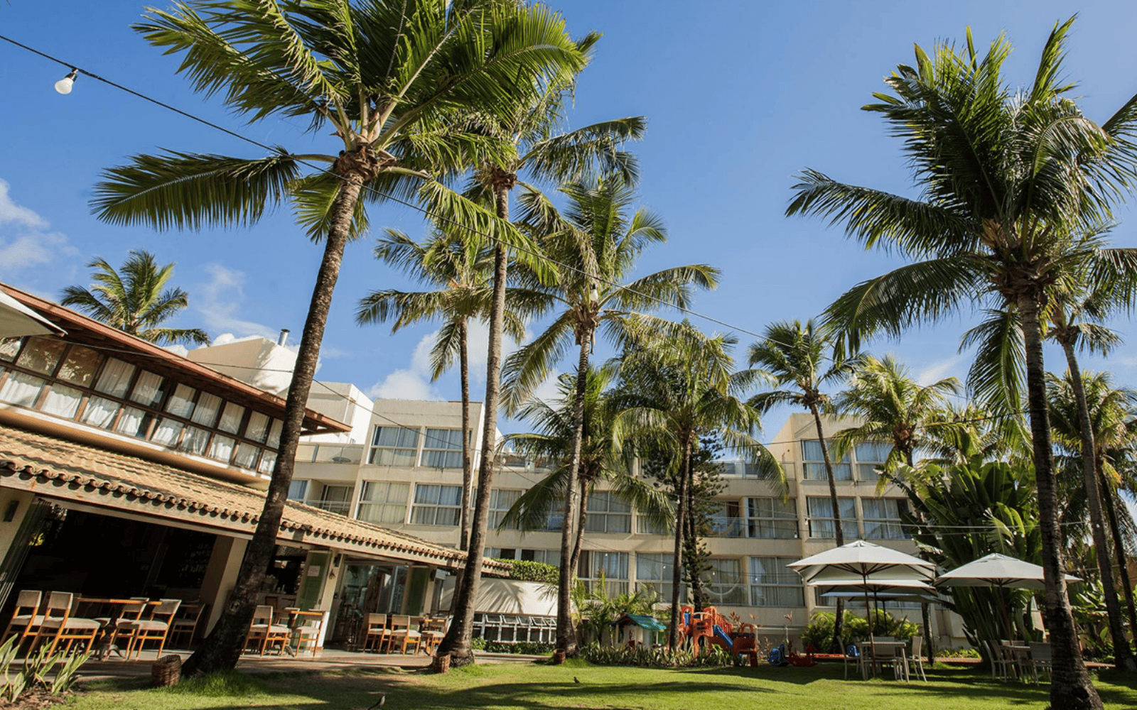 Decorados com a poesia de Itapuã, nossos 71 quartos convidam você a sentir-se em casa. De janelas abertas, é possível ouvir o barulho do mar e a suave brisa que faz cantiga nos coqueirais. Você pode escolher a linda vista para a praia do Farol de Itapuã ou preferir contemplar nosso jardim de paisagismo tropical, com plantas de cores vivas e folhagens por vezes esculturais.
