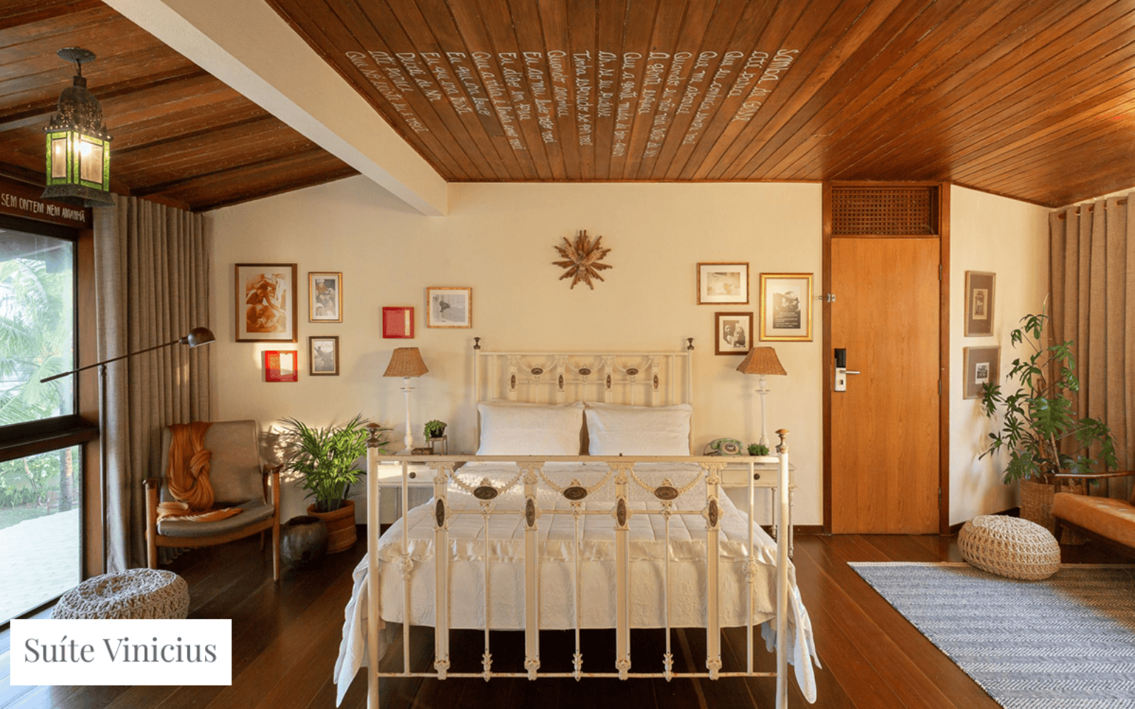 Escolhemos cuidadosamente a suíte onde o poeta costumava dormir para ser a principal acomodação do hotel. A Suíte Vinicius de Moraes conta com fotos e objetos originais da época, além de uma banheira cinematográfica e uma mini biblioteca com as principais obras do artista, muitas delas escritas ali. Um quarto muito procurado para ocasiões românticas, onde frases ditas sem querer viram versos pra sempre lembrar.