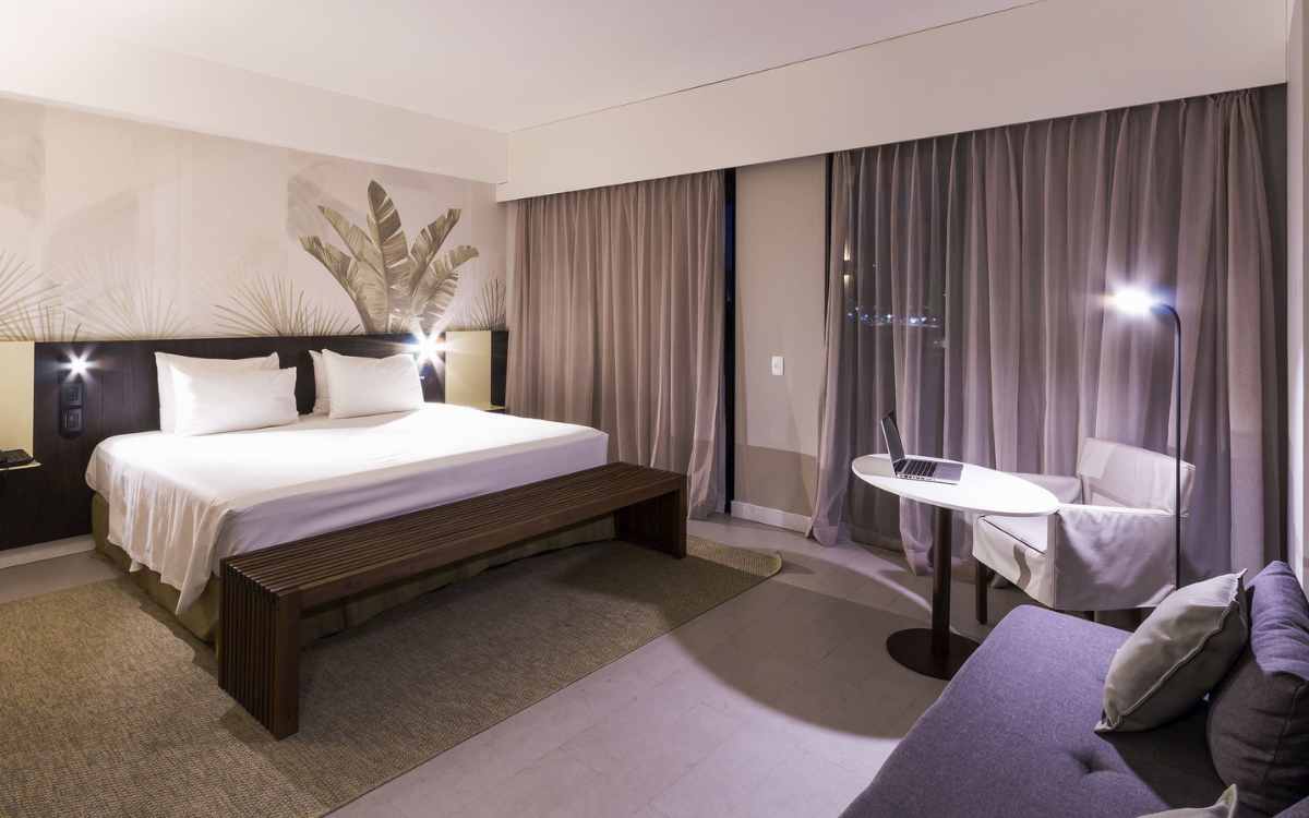 O Hotel conta com 202 apartamentos e 06 salas de eventos para 200 pax no total.