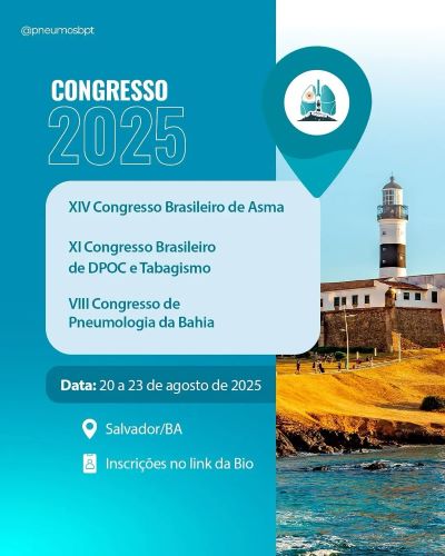 É com grande satisfação que anunciamos a realização conjunta de três importantes eventos da área respiratória: o XIV Congresso Brasileiro de Asma, o XI Congresso Brasileiro de DPOC e Tabagismo e o VIII Congresso Baiano de Pneumologia e Tisiologia, que acontecerão de 20 a 23 de agosto de 2025, no Centro de Convenções de Salvador.