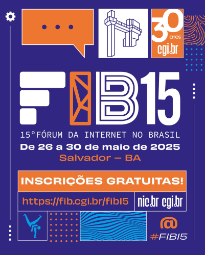 É com grande entusiasmo que o Comitê Gestor da Internet no Brasil anuncia a realização do 15º Fórum da Internet no Brasil (FIB15), que acontecerá entre os dias 26 e 30 de maio de 2025, o FIB15 reunirá representantes de diversos setores para debater os principais temas ligados à governança, desenvolvimento e expansão de uma Internet cada vez mais inclusiva, diversa e inovadora no Brasil, alinhada aos princípios de liberdade, direitos humanos e privacidade. Uma oportunidade única para participar ativamente das discussões que moldam o futuro da Internet no país, com transmissão online pelo canal no YouTube.