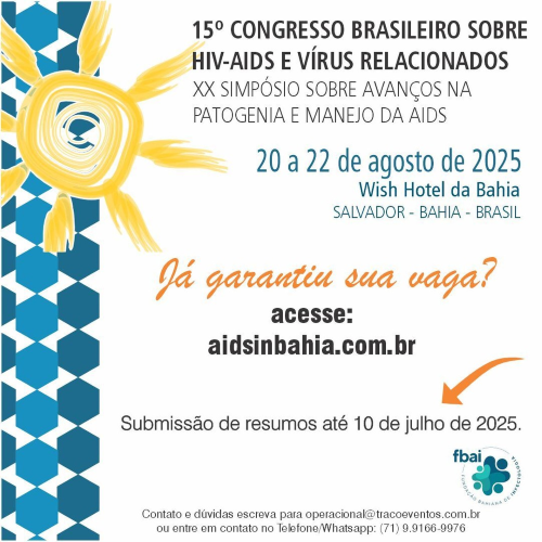 Salvador sediará, entre os dias 20 e 22 de agosto de 2025, no Wish Hotel da Bahia, o 15º Congresso Brasileiro sobre HIV-Aids e Vírus Relacionados, promovido pela Fundação Bahiana de Infectologia. Em 2025, o evento será realizado conjuntamente com o XX Simpósio sobre Avanços na Patogenia e Manejo da Aids, fortalecendo ainda mais os debates científicos e as trocas de conhecimento.
