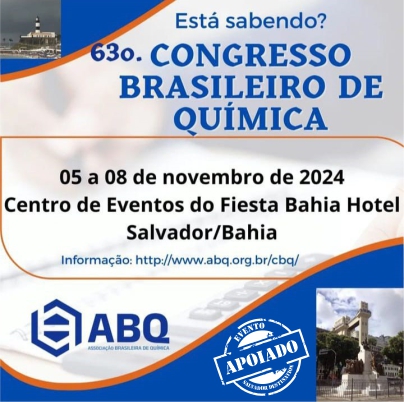 O Congresso Brasileiro de Química - CBQ, que acontecerá em 2024 em sua 63ª versão no Centro de Eventos do Fiesta Bahia Hotel, na cidade de Salvador, Bahia, entre os dias 5 e 8 de novembro, sob o tema central: “Química: O farol na descoberta de novos horizontes”.